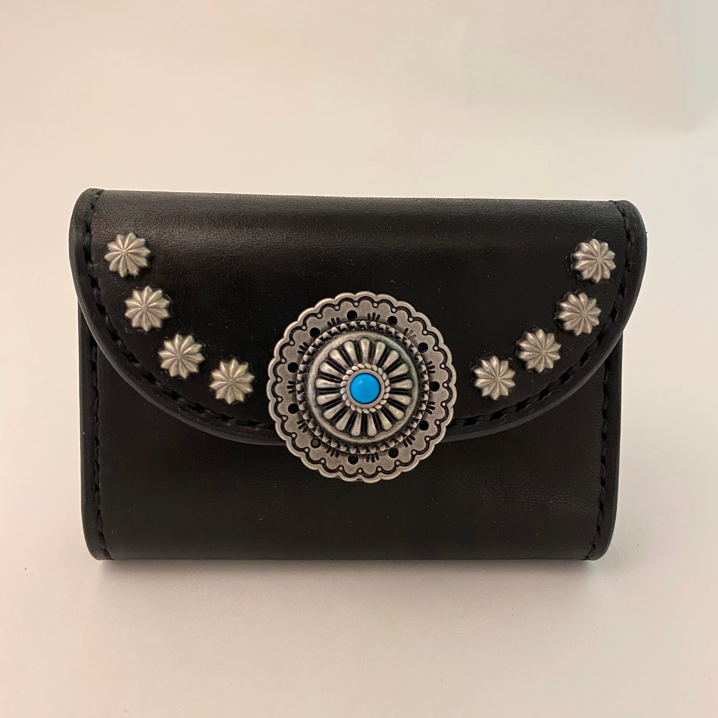 【即納☆送料無料】本革レザーカードケース ターコイズフラワーアポロ コンチョ ボタンタイプ BLACK
