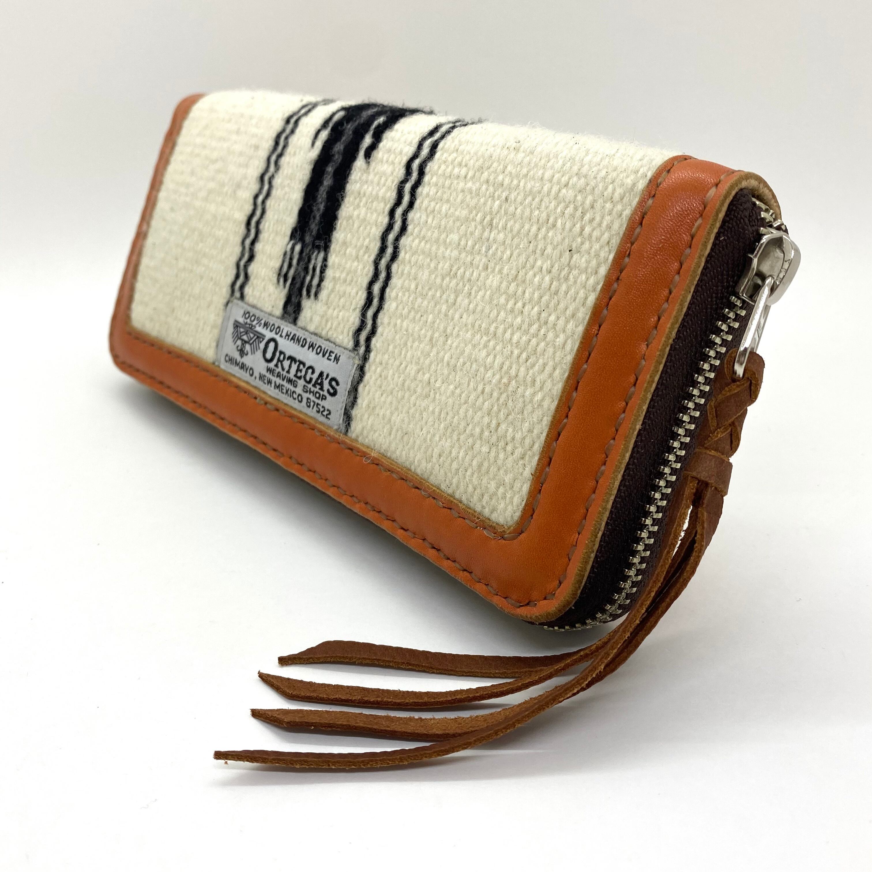 【SALE☆送料無料】ORTEGA's×本革レザーウォレット ラウンドファスナー 長財布 オルテガラグ使用 茶キャメル×アイボリー