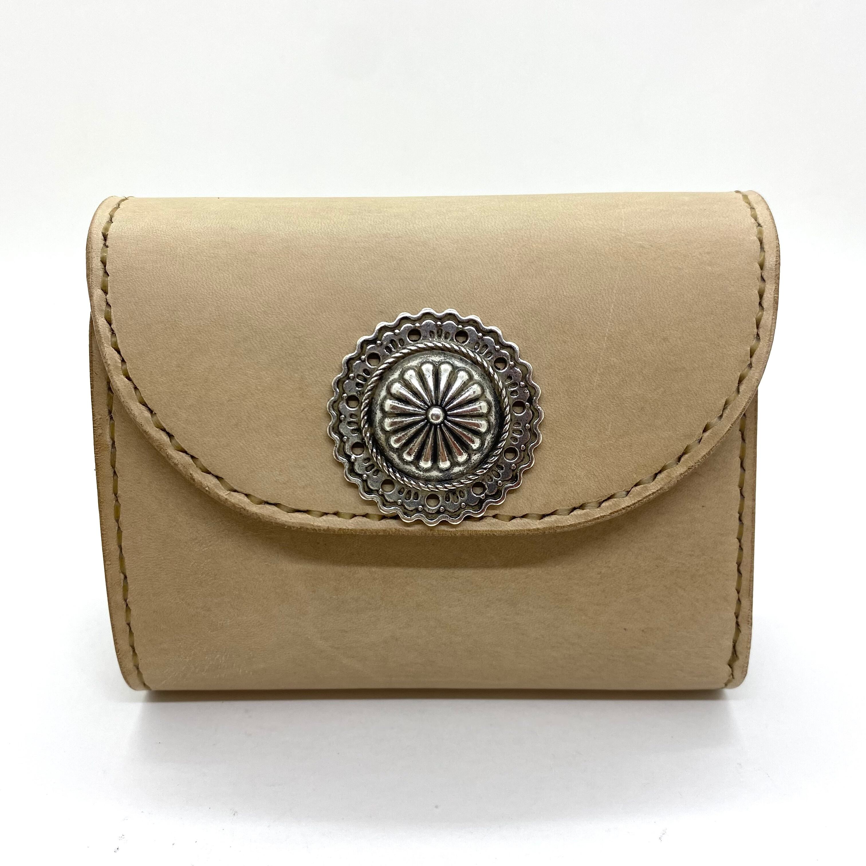 【即納☆送料無料】本革レザーウォレット ショート 財布 フラワーコンチョ TN ナチュラルベージュ 三つ折り財布