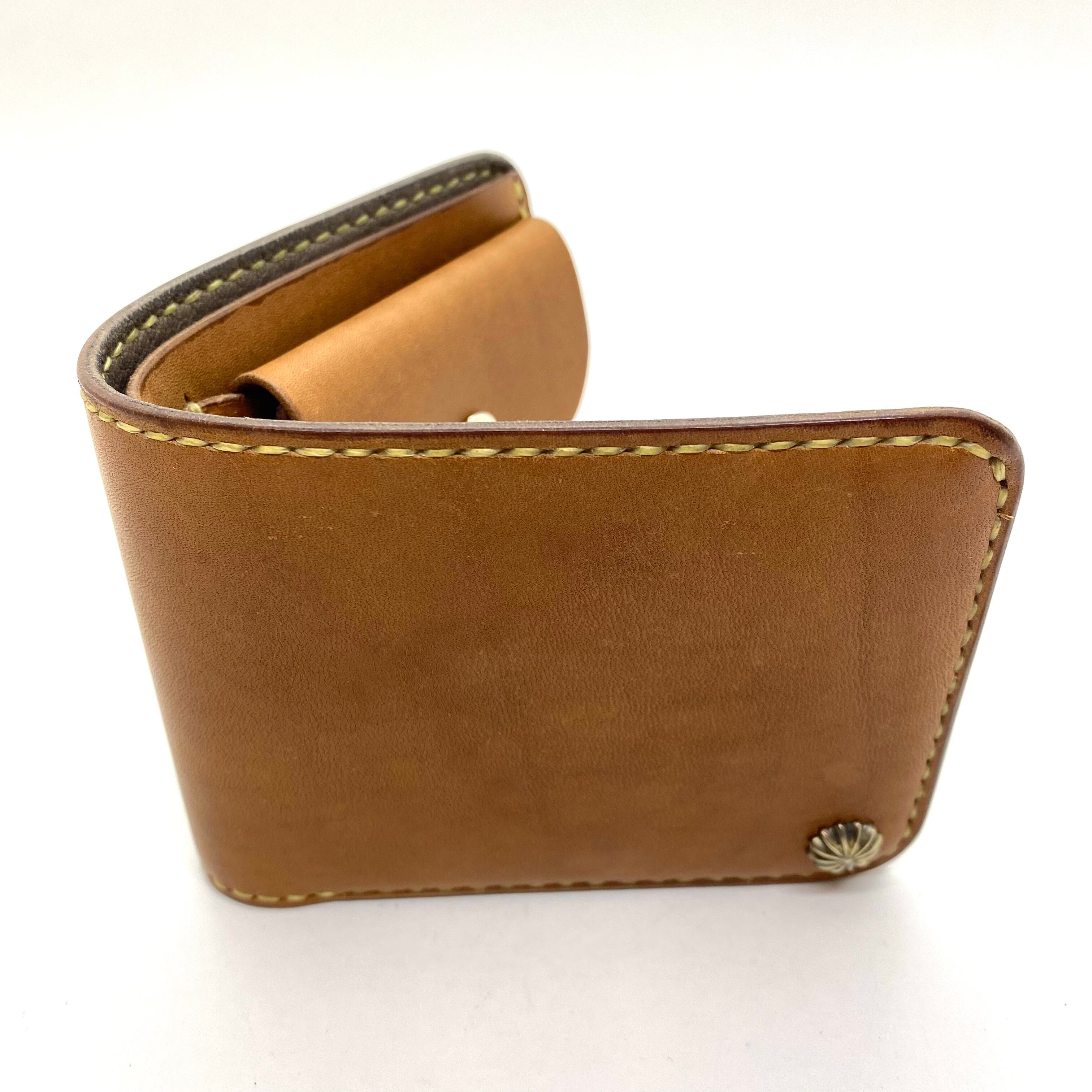 【送料無料】本革レザー ショート財布 二つ折り財布 手縫い メンズ小銭入れ 茶 ブラウン アポロスタッズ