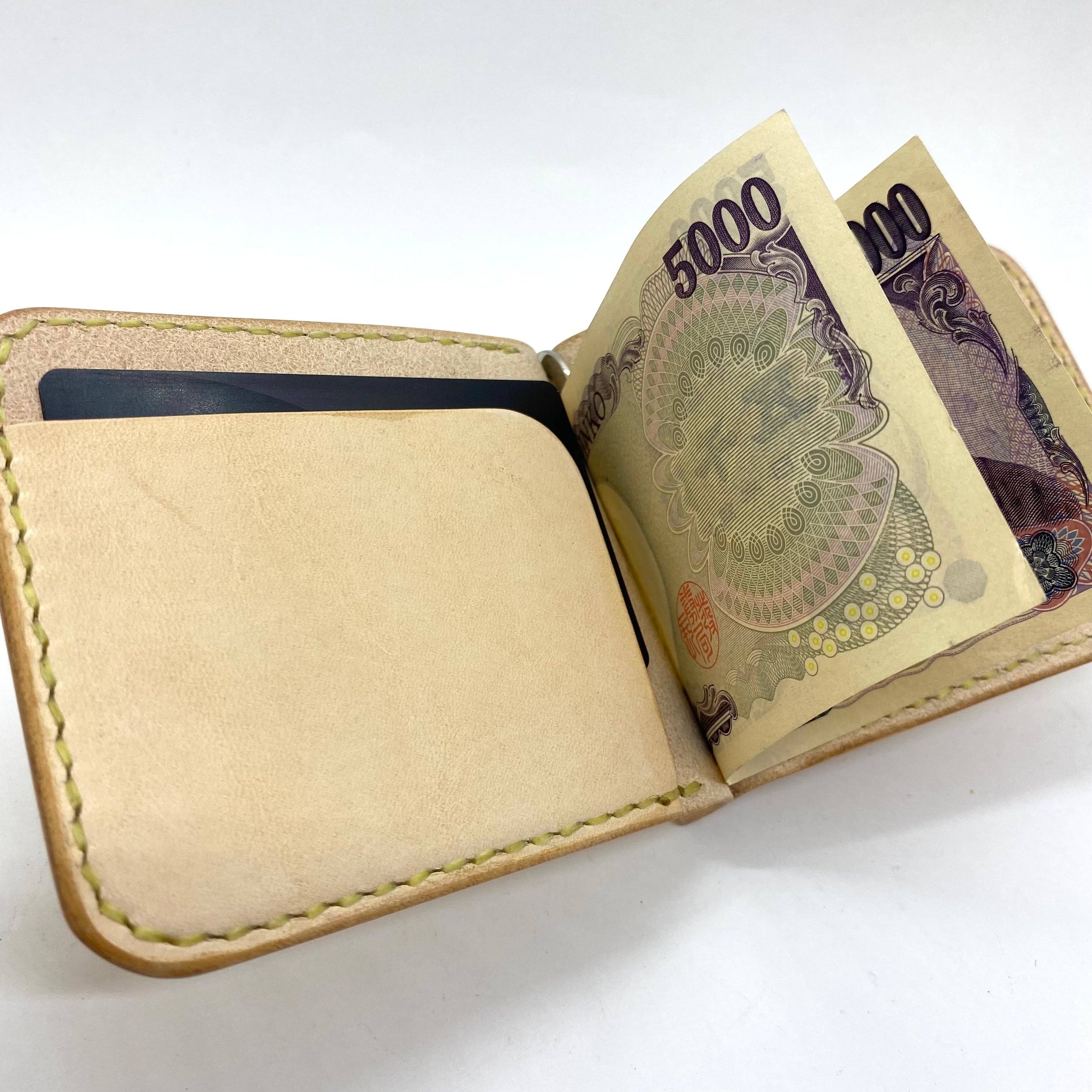 【即納☆送料無料】本革レザー ショート財布 マネークリップ 星型 スターコンチョボタン TN ナチュラル ベージュ