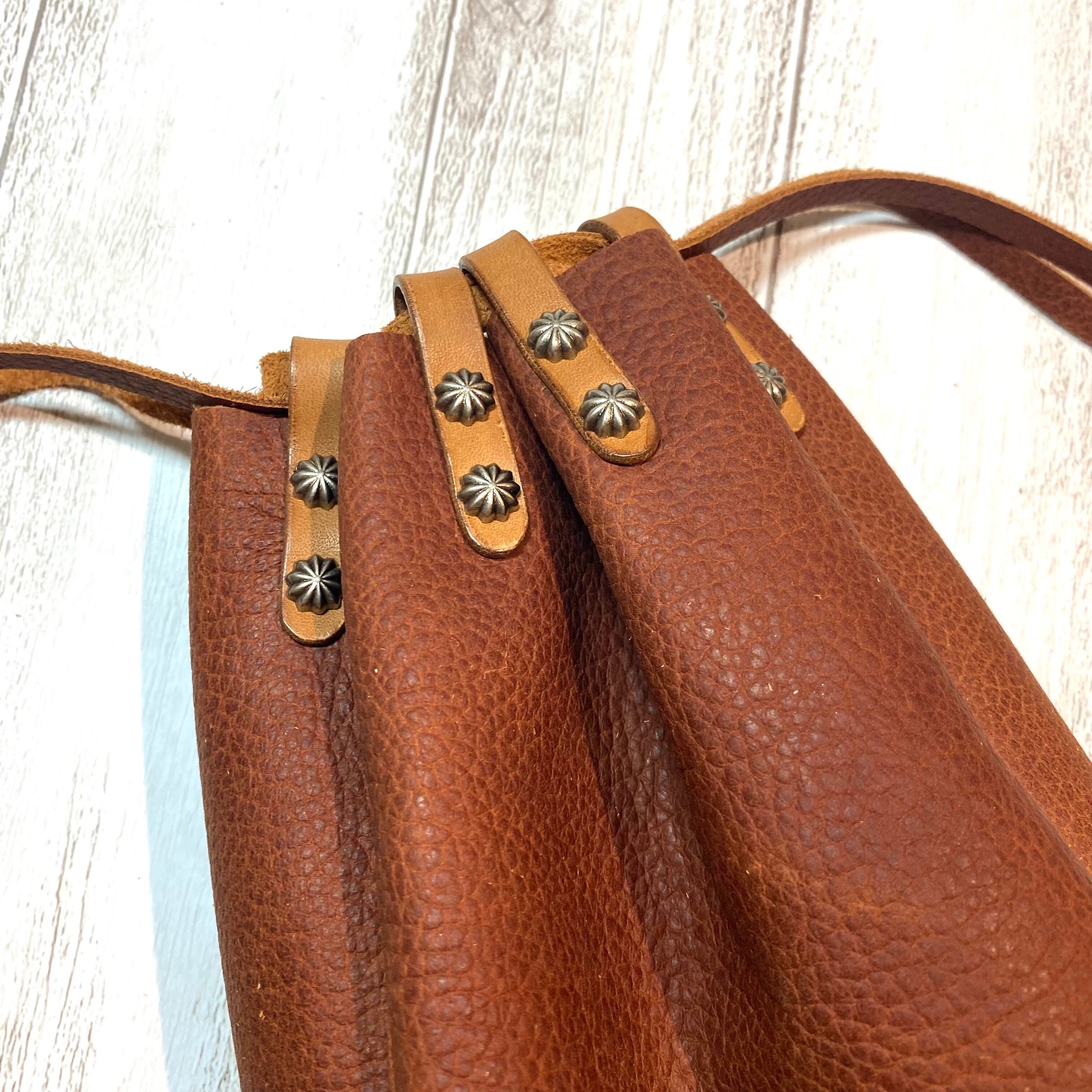 本革レザー 巾着バッグ ハンドメイド 茶ブラウン