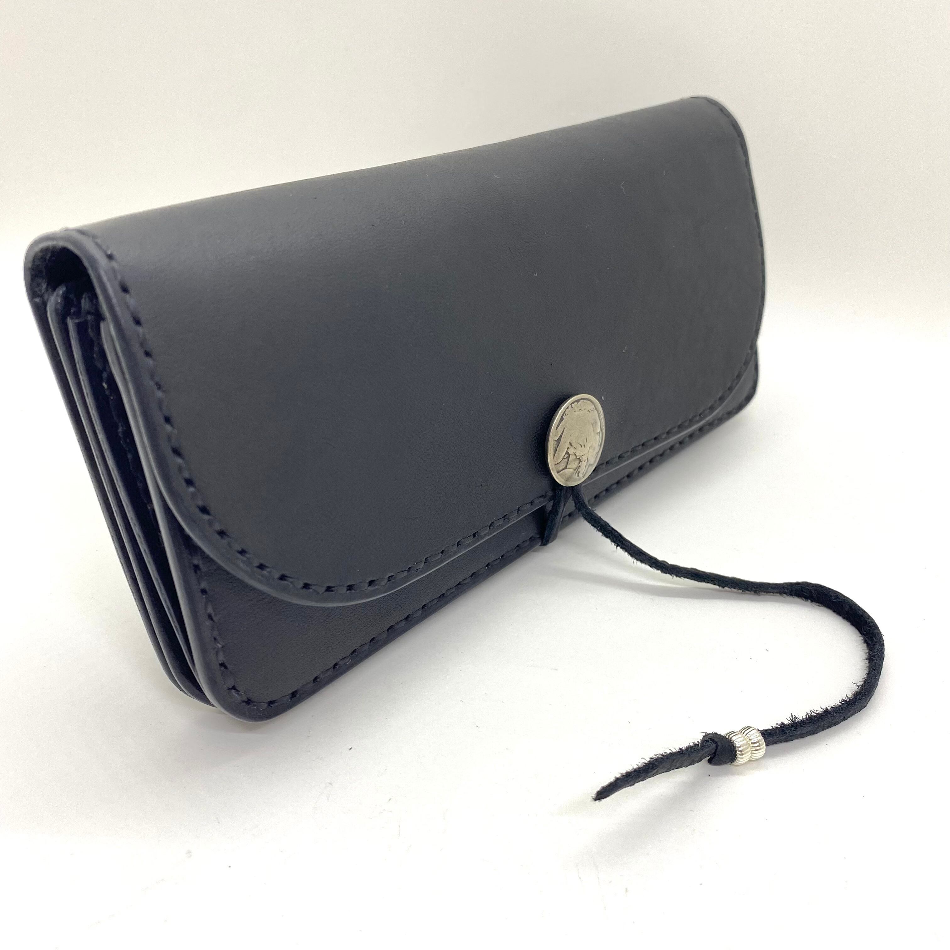 【即納☆送料無料】本革レザーウォレット 長財布 5セントコインコンチョ BK ブラック 黒 革紐