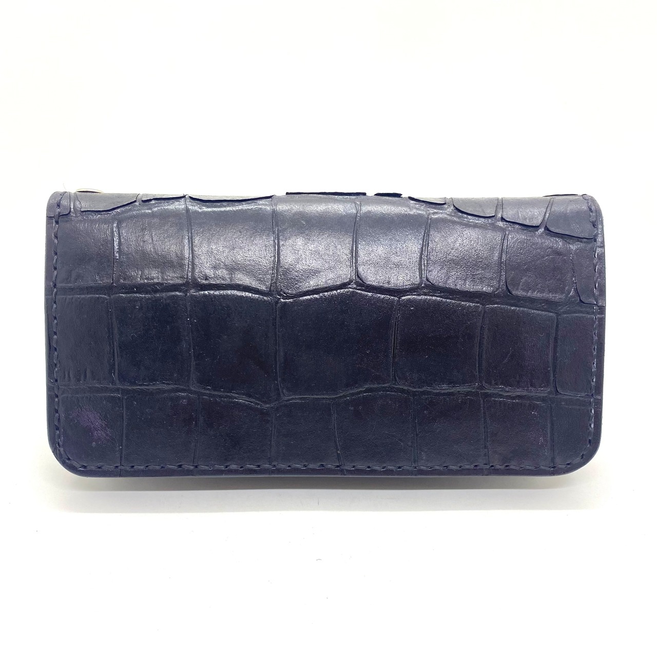 【即納☆送料無料】本革レザー ロングウォレット クロコ型押しレザー 長財布 黒 ブラック BLACK