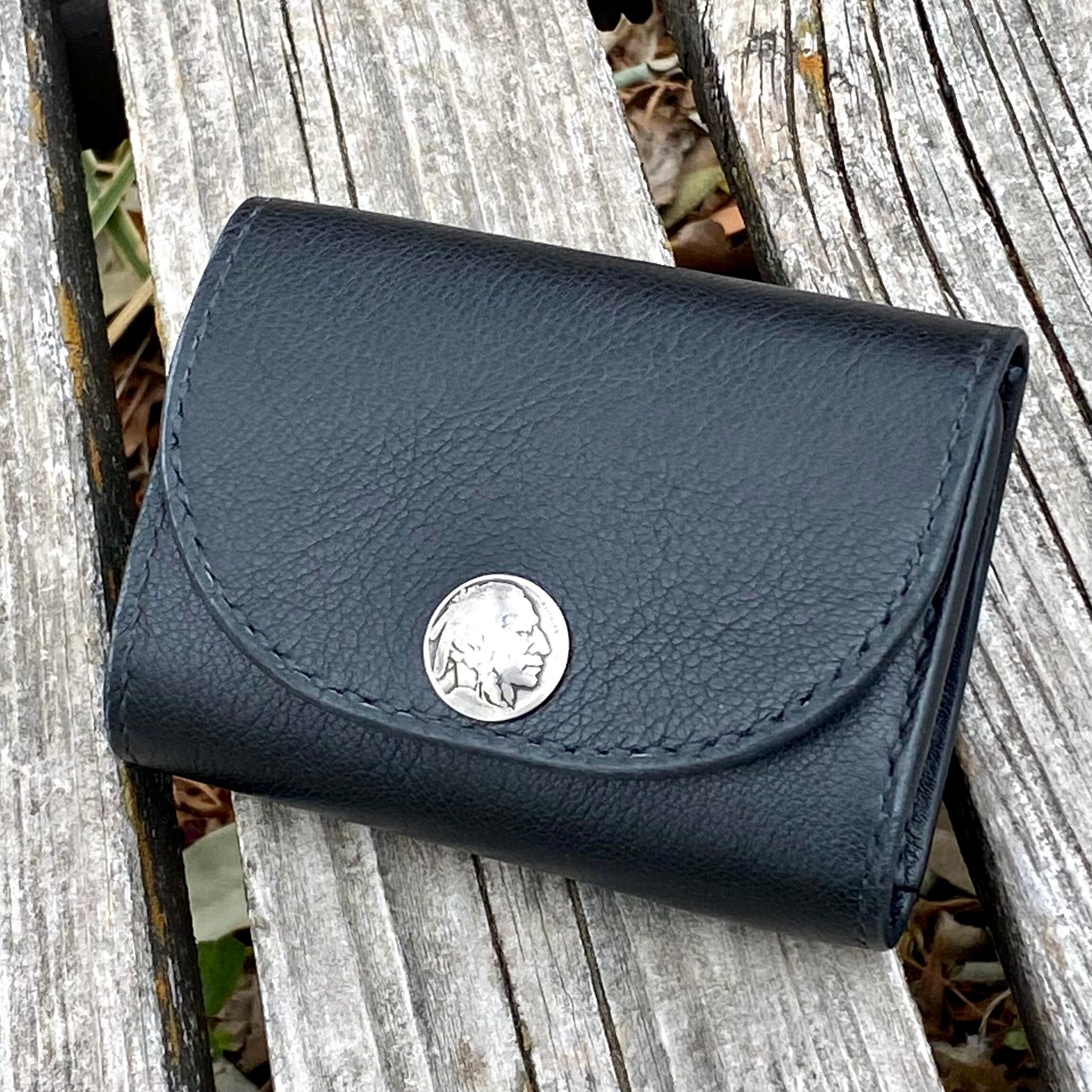 【即納☆送料無料】本革レザーウォレット ショート 財布 5セントコンチョ BLACK 黒 三つ折り財布