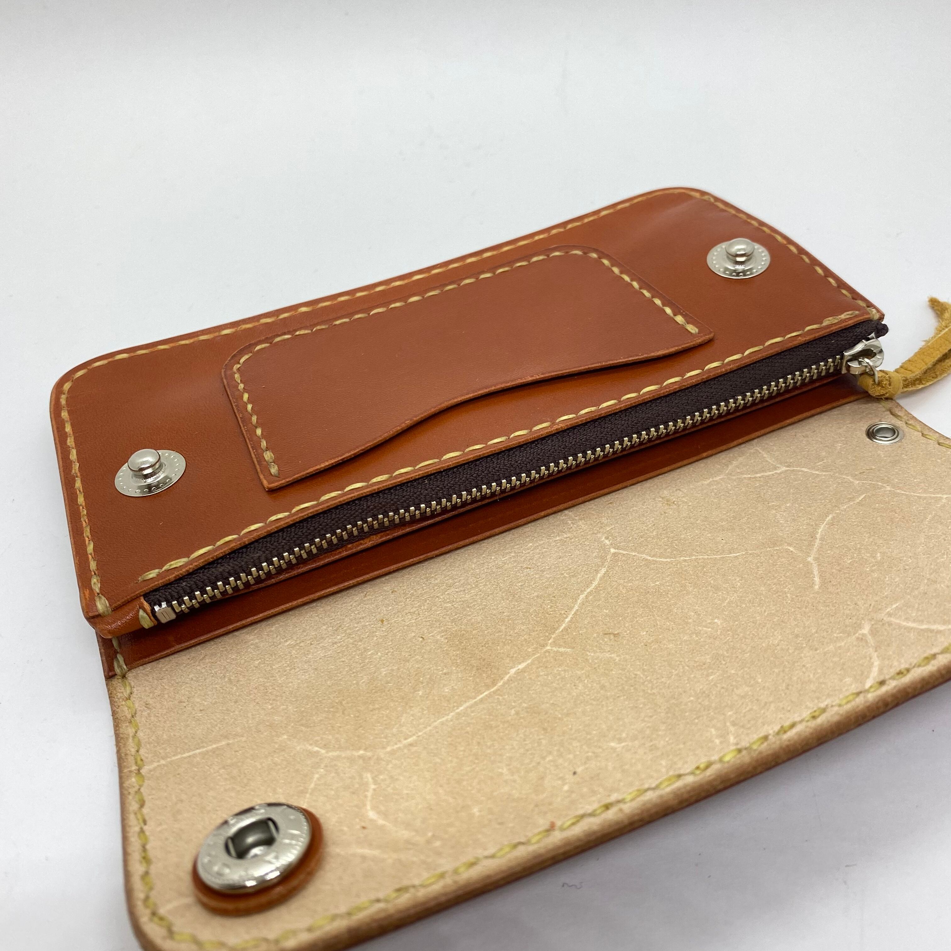 【即納☆送料無料】本革レザー ALLハンドメイド トラッカーウォレット 長財布 茶 キャメル