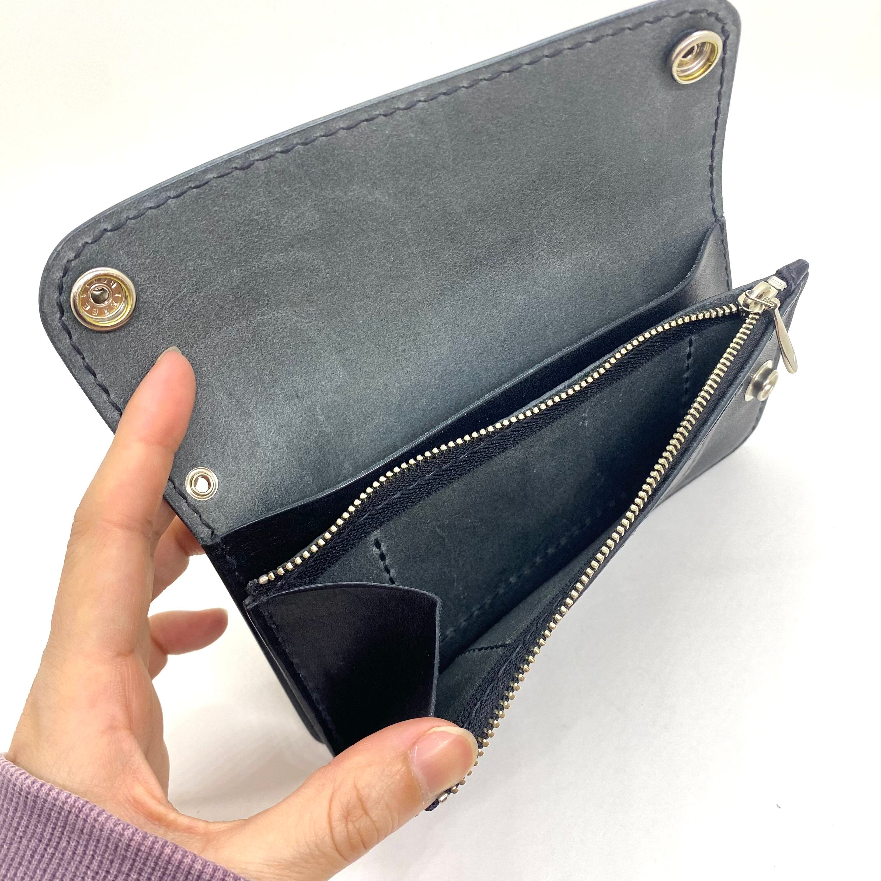 【即納☆送料無料】本革レザー ALLハンドメイド トラッカーウォレット 長財布 黒 ブラック