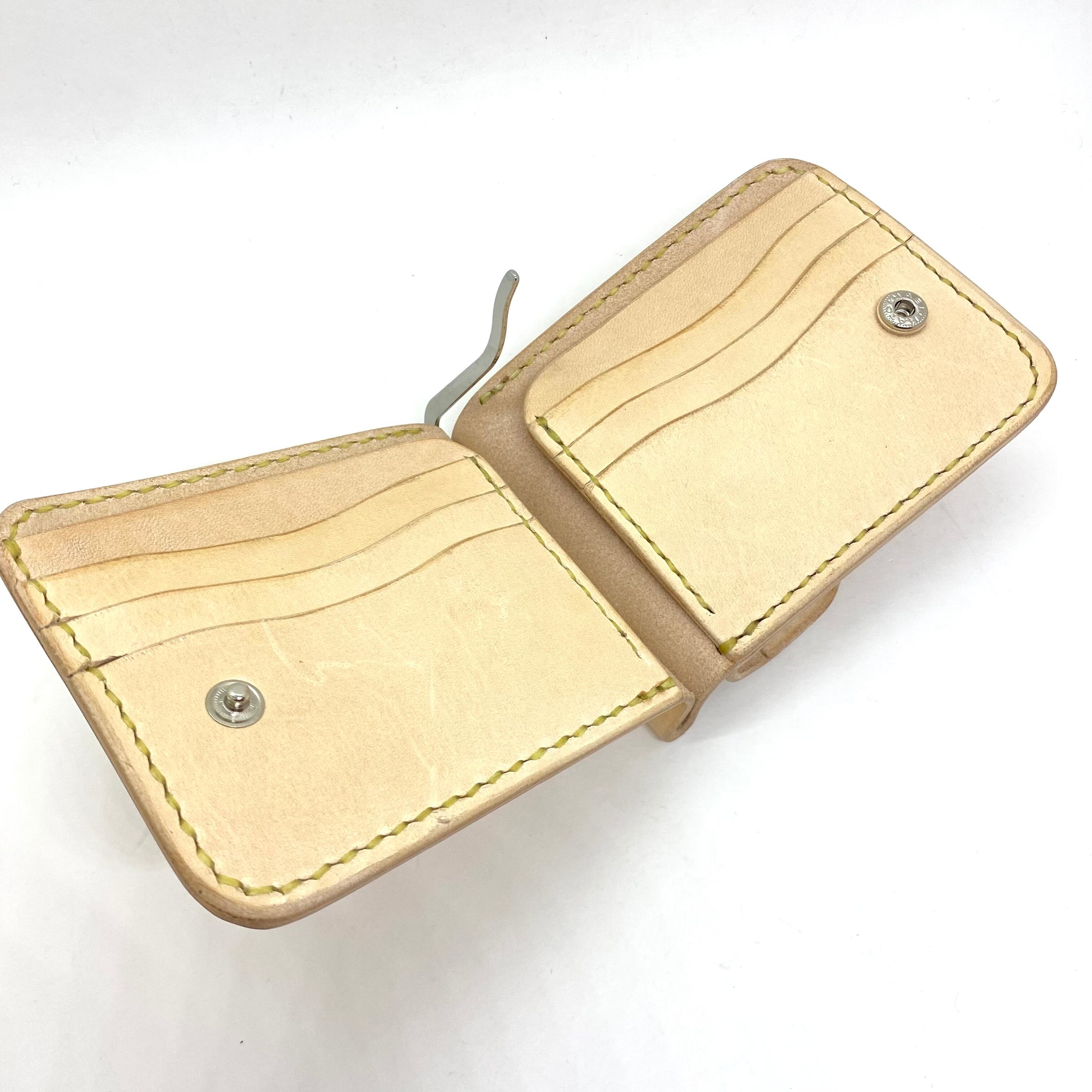 【即納☆送料無料】本革レザー ショート財布 マネークリップ Bigフラワーコンチョ ナチュラルベージュ