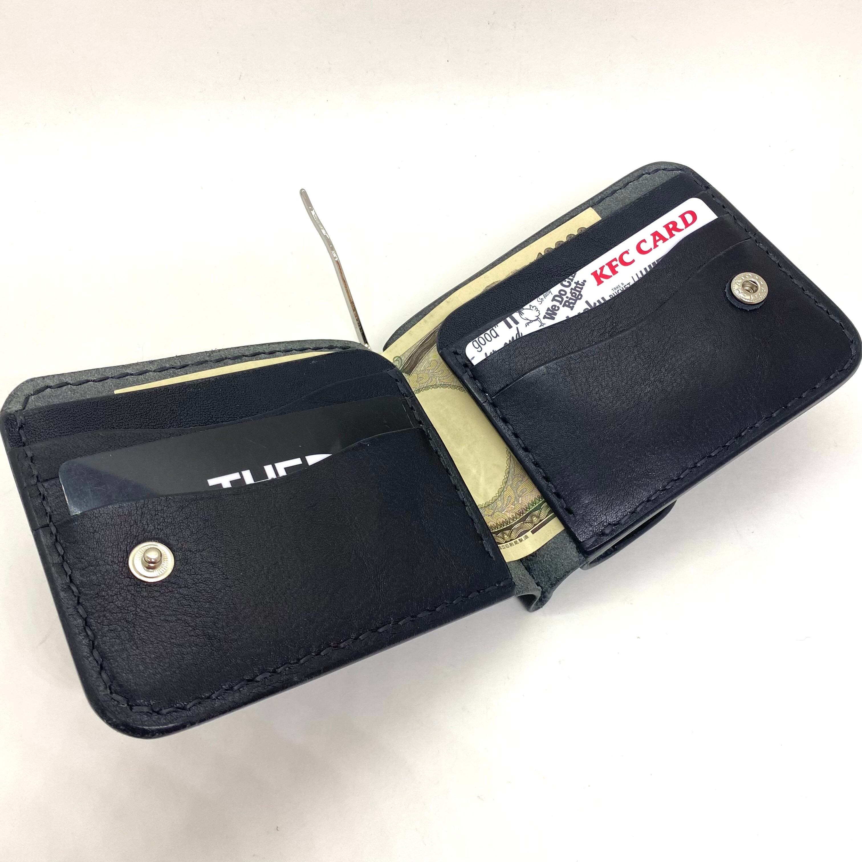 【即納☆送料無料】本革レザー ショート財布 マネークリップ Bigフラワーコンチョ 黒 ブラック