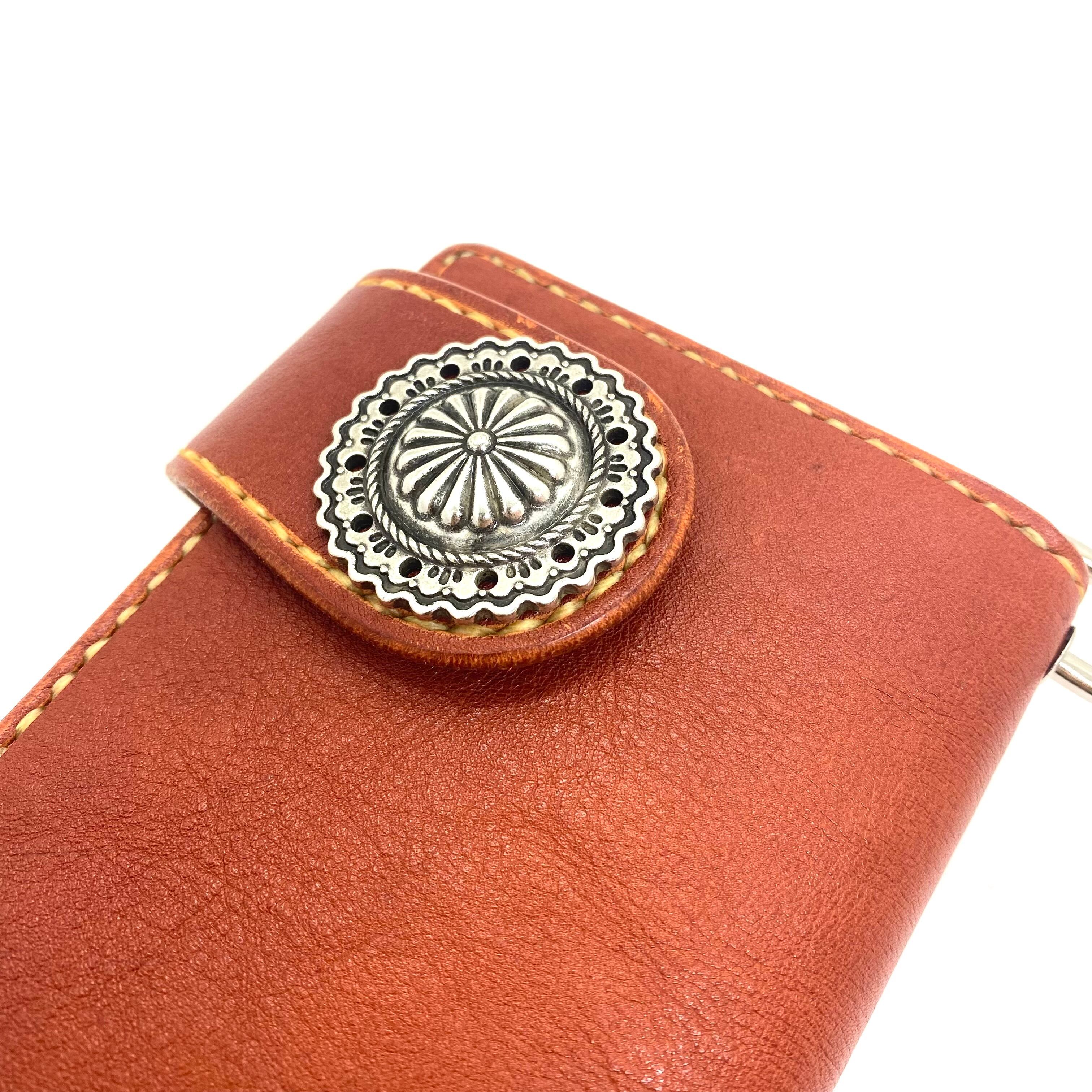 【即納☆送料無料】本革レザー ロングウォレット フラワーコンチョ ボタンタイプ 茶 ブラウン
