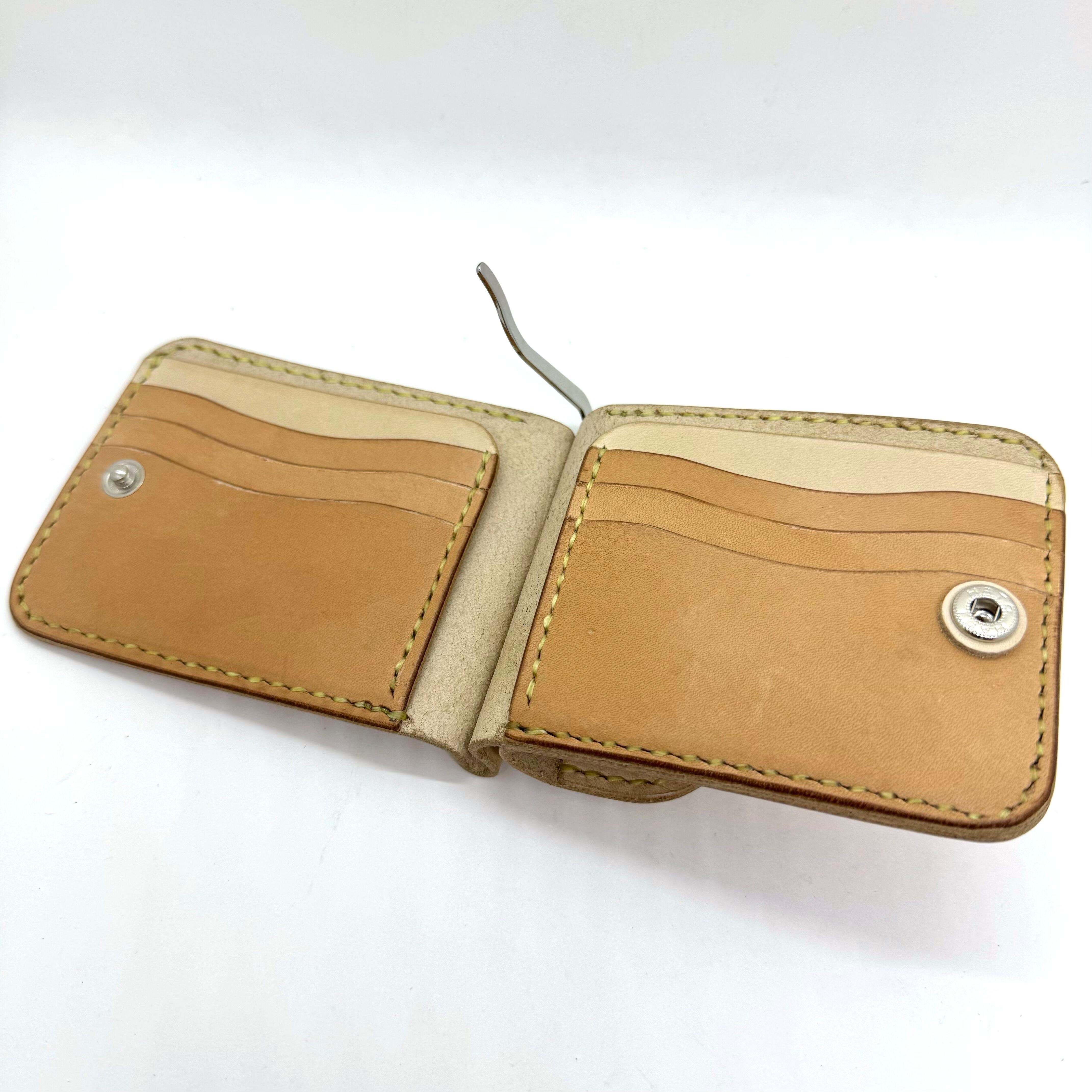 【即納☆送料無料】本革レザー ショート財布 マネークリップ Bigフラワーコンチョ ナチュラルベージュ