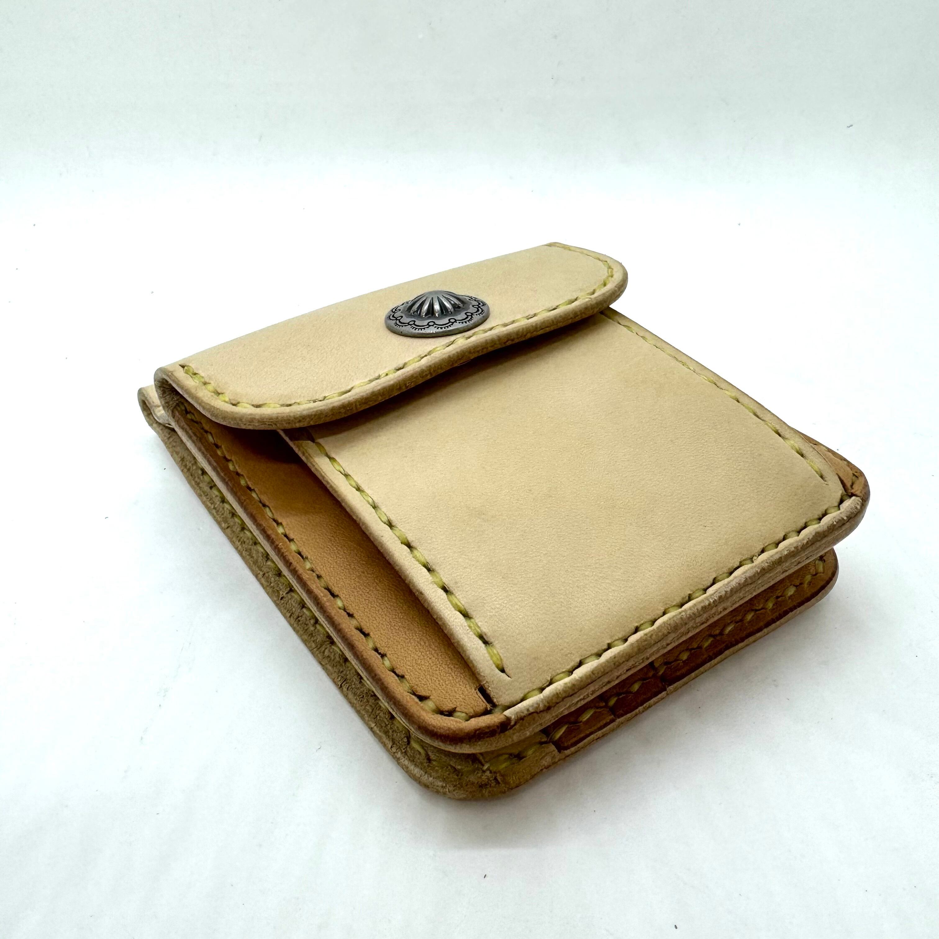 【即納☆送料無料】本革レザー ショート財布 マネークリップ ナバホデイジーコンチョ ナチュラルベージュ
