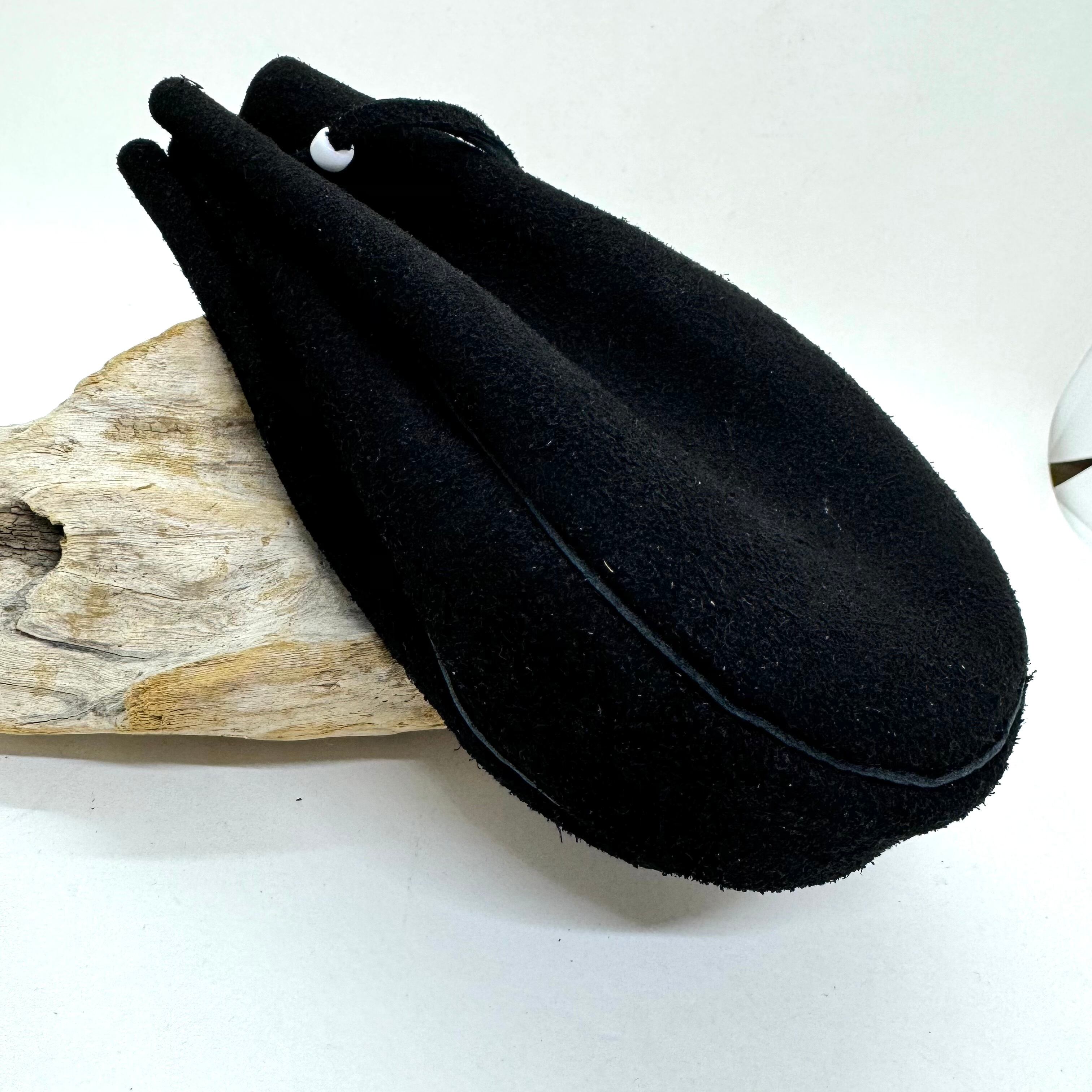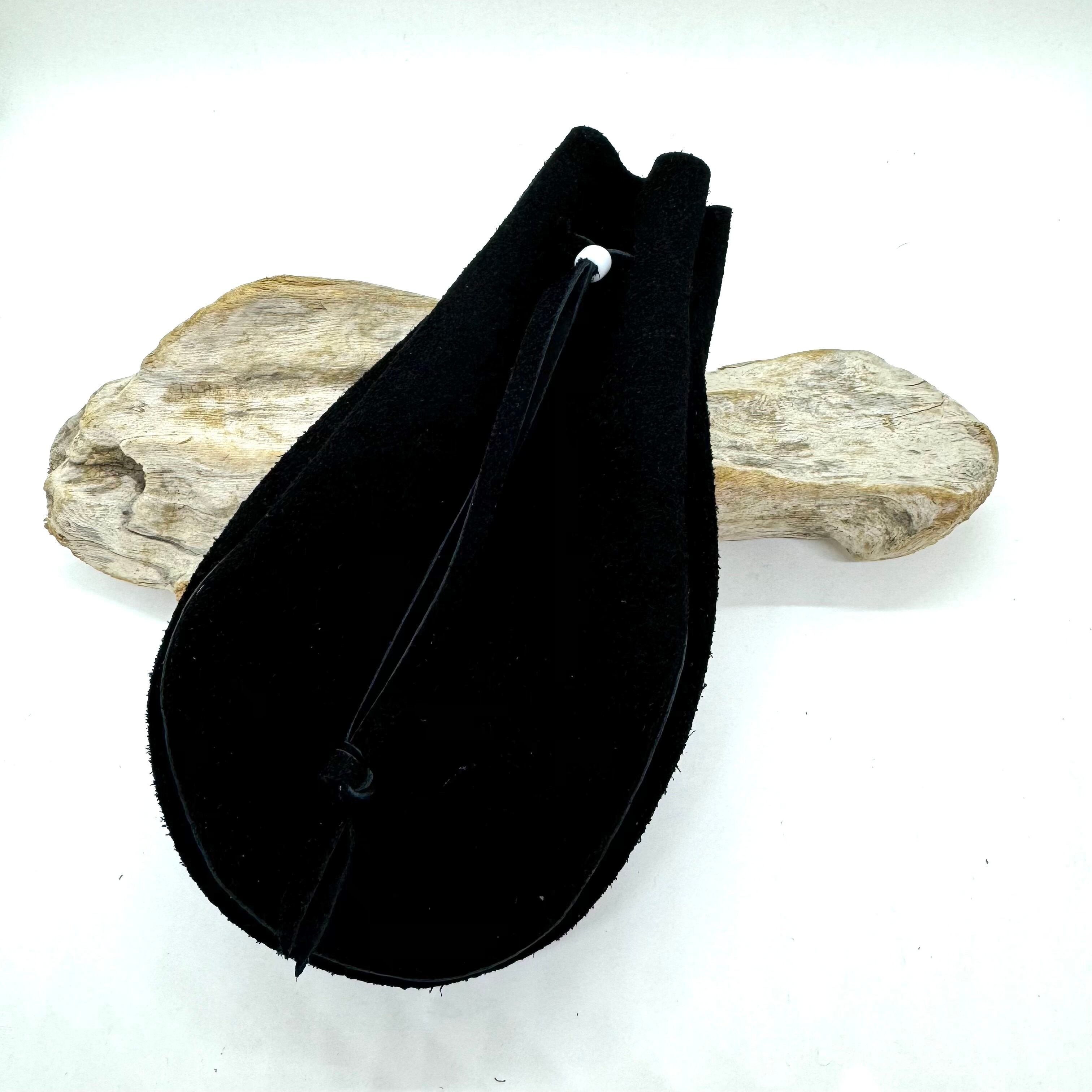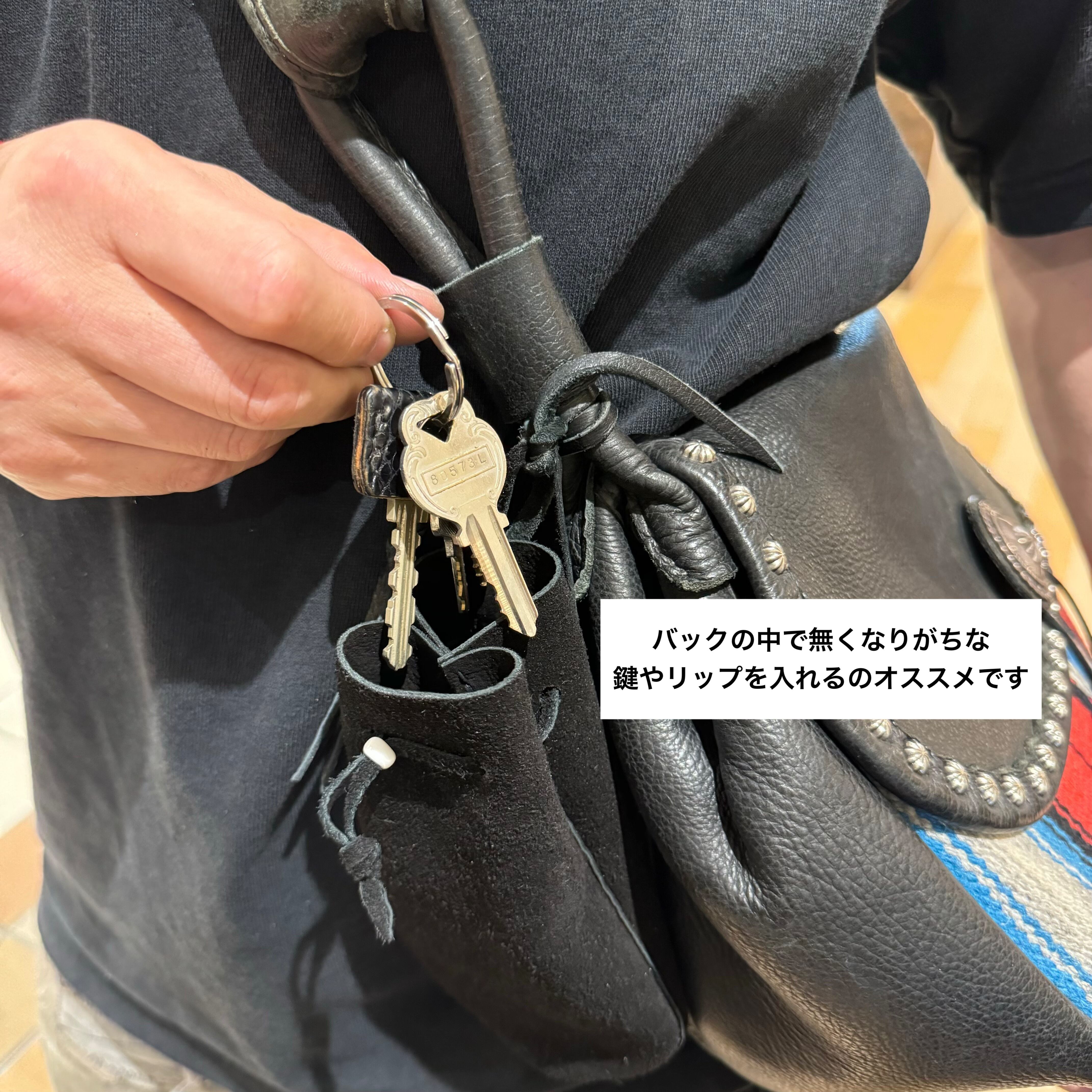 【即納☆送料無料】本革スウェードレザー 黒 ブラック 巾着ポシェット マチ付き